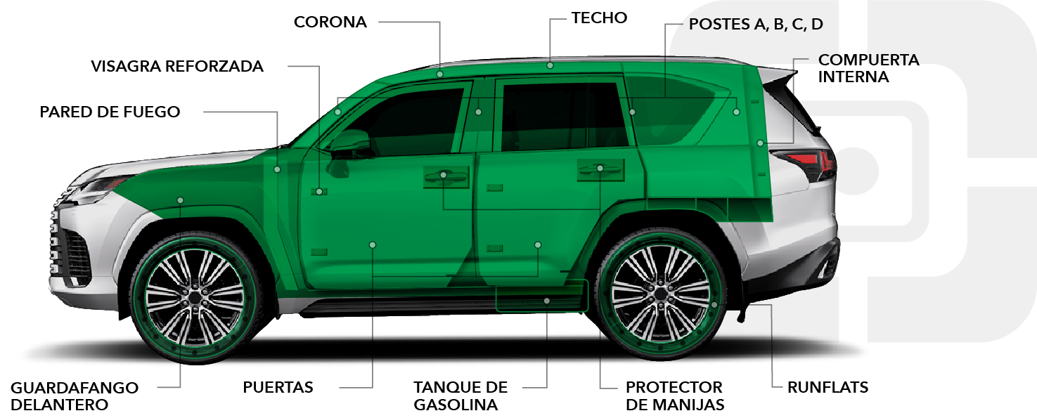 Nuestra carrocería reforzada convierte cada trayecto en un espacio seguro frente a cualquier amenaza.